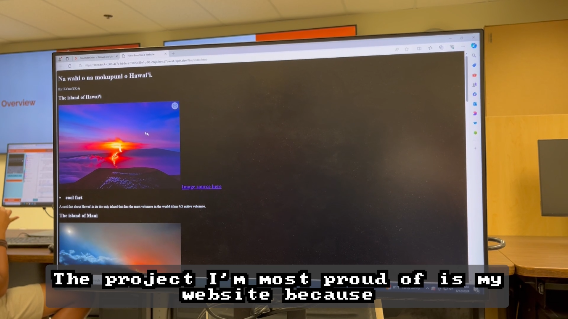 At the end of each session, the students and teachers would celebrate by hosting a showcase night where parents of the students would come to see their kids perform Hawaiian dances, chants, as well as discover what the students had learned from their teachers. This was done in the form of a video that the teachers create, so I had to use my video creating skills to produce a video demonstrating all the projects that the students had made. Below is a frame from the showcase video I had made.